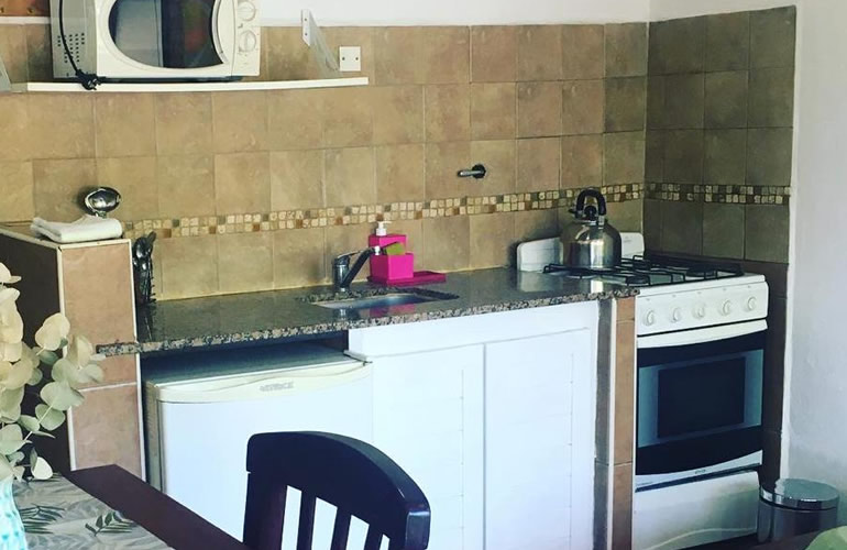 Las cabañas cuentan con una sala amplia con cama cucheta, mesa y sillas, un sector de cocina con mesada, heladera y microondas, un baño y en el piso superior una habitacion con cama doble y vistas. Esta lista para acomodar hasta 5 personas. Detrás de cada cabaña cuenta con un parrilero y tender para ropa. La estadía incluye servicio de limpieza, ropa blanca.